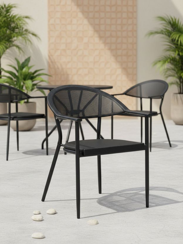 Если вы ищете, какую садовую мебель выбрать для дачи или балкона, обратите внимание на черный комплект C010204. Прочные материалы и жесткое сиденье с подлокотниками обеспечивают долговечность, а универсальный дизайн легко сочетается с разными стилями экстерьера. Благодаря устойчивости к погодным условиям этот комплект можно использовать круглый год — не нужно убирать мебель при смене сезона.