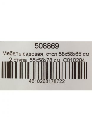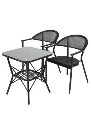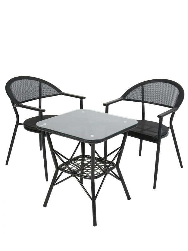 Мебель садовая черная, стол 58х58х65 см, 2 стула 55х58х78 см, C010204