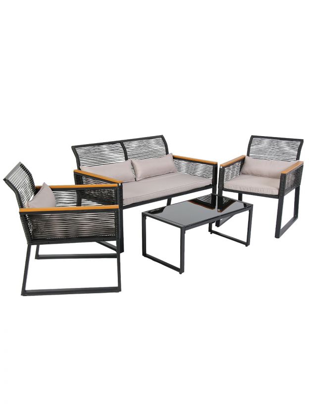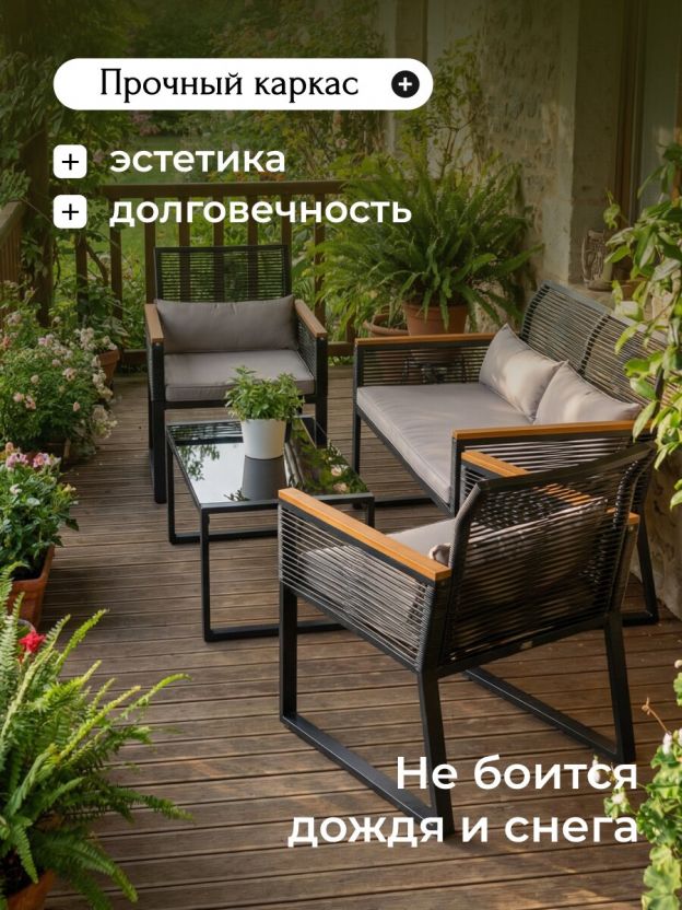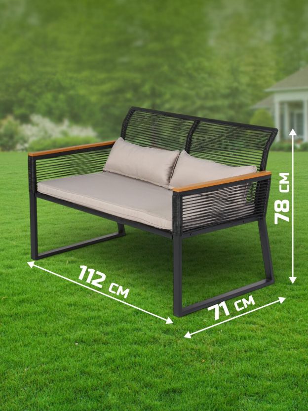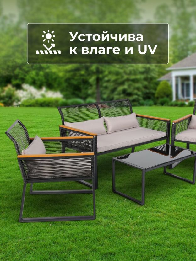 • Универсальный комплект: стол, 2 стула и диван с подушкой для отдыха на свежем воздухе.
