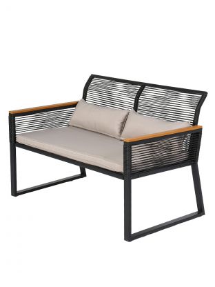 Мебель садовая черная, стол, 83х44х37 см, 2 стула, 1 диван, подушка, 58х71х78 см, 112х71х78 см, C010196