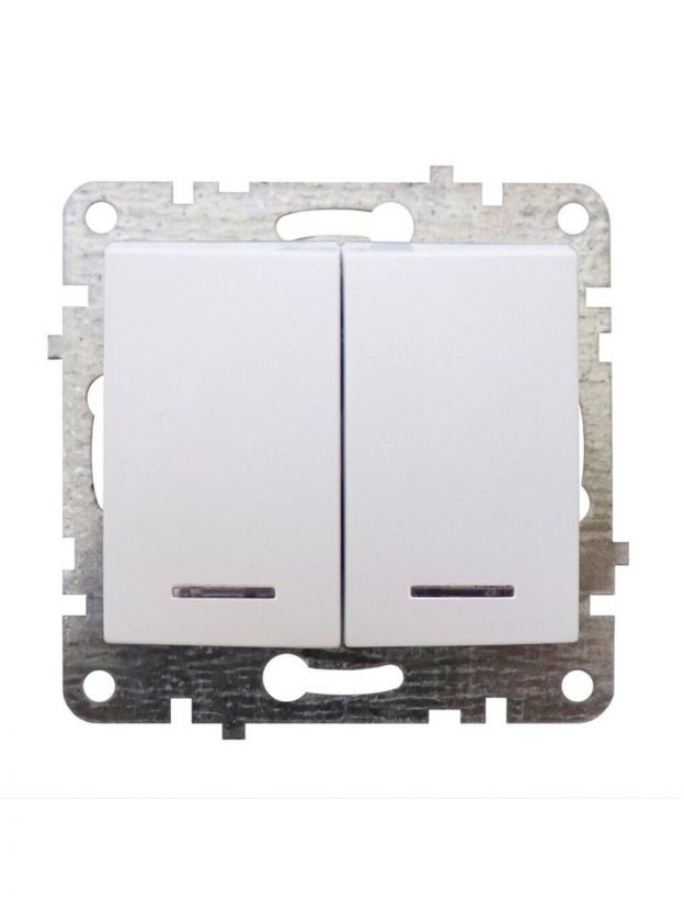 Механизм выключателя скрытой установки, двухклавишный, без заземления, подсветка, белый, Quel Lumina, 4105-0021-90102