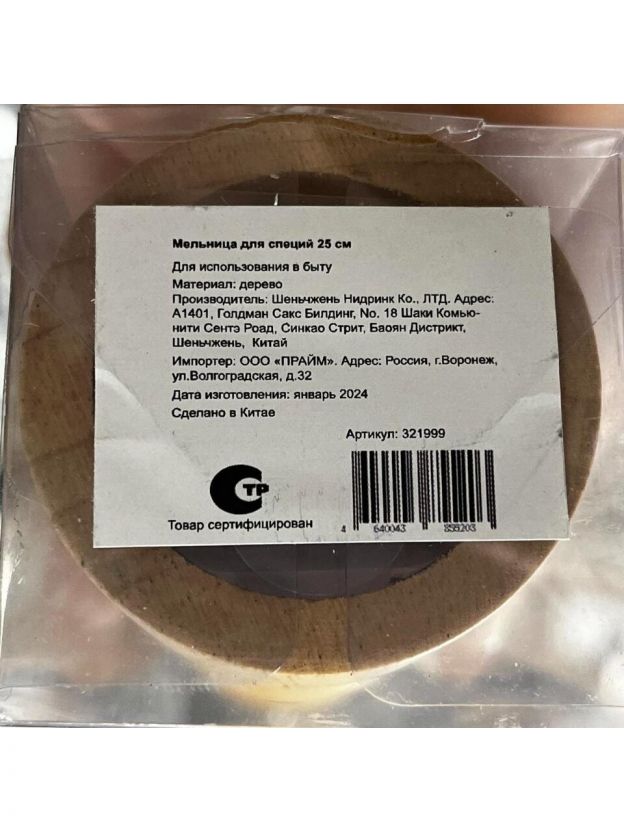Мельница для специй дерево, 25 см, бежевая, Y3-1155