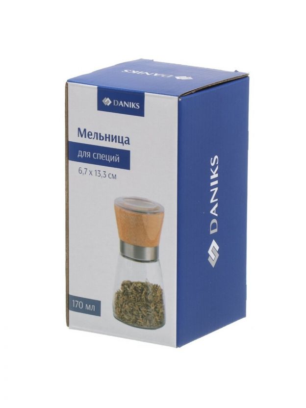 Мельница для специй стекло, дерево, 170 мл, Daniks, YM6713DM