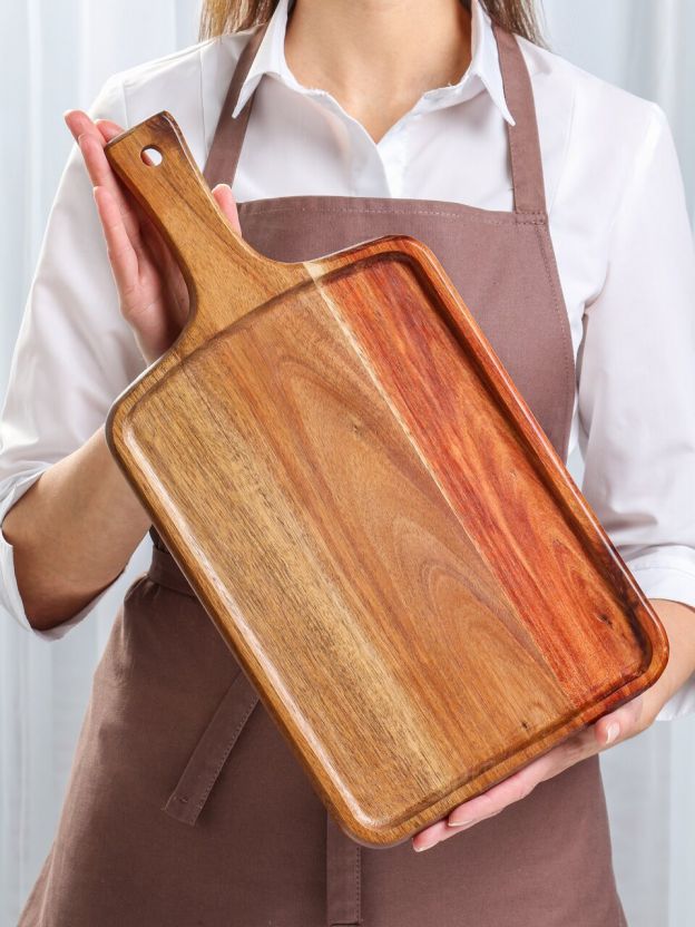 Акация прочнее и долговечнее пластика и фанеры, не впитывает запахи, устойчива к влаге, подходит для частого использования.