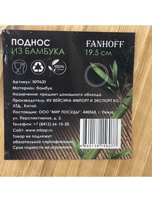 Откройте для себя элегантность и стиль с менажницей для подачи из бамбука диаметром 19.5 см от Fanhoff. Этот изысканный аксессуар для сервировки станет незаменимым элементом вашего стола, привнося природную красоту и функциональность. Изготовленная из высококачественного бамбука, она сочетает в себе экологичность и долговечность.