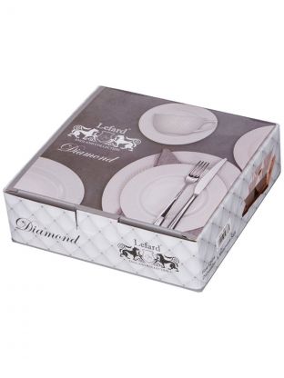 Менажница Lefard Диаманд имеет размер 17х17х5 см, в комплекте 4 секции и 4 отдельные ложки для подачи разных блюд.