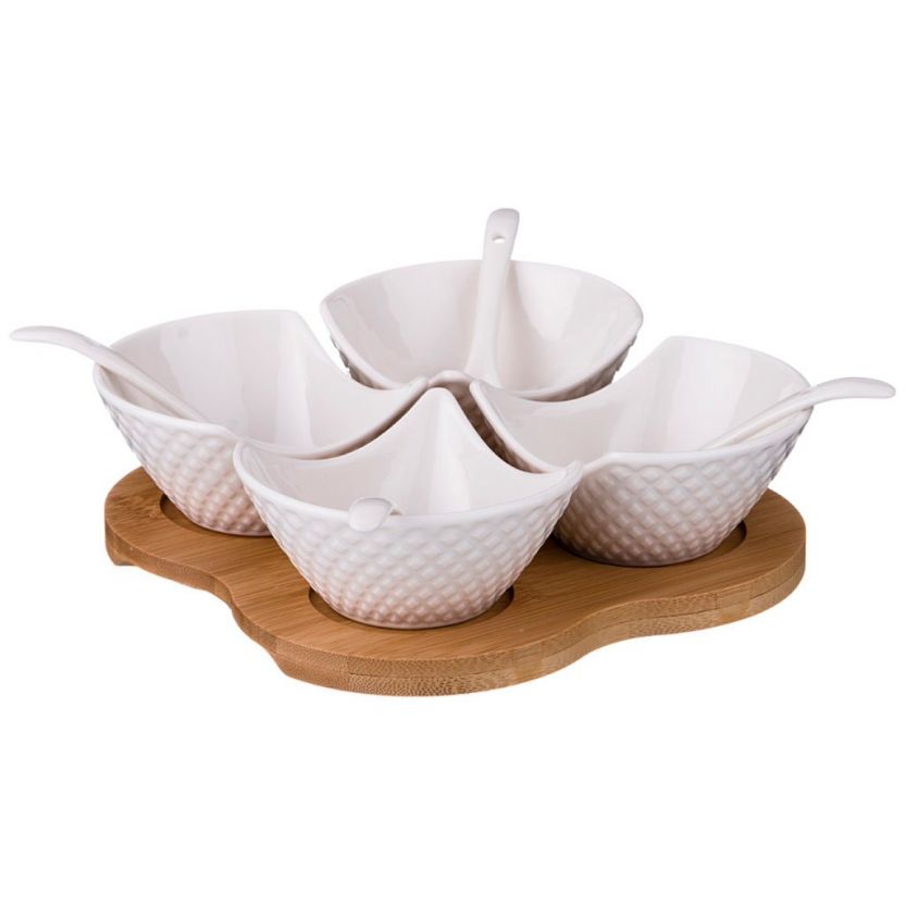 Менажница фарфор, 18х18х5 см, деревянная подставка, +4 ложки, Lefard, Диаманд, 359-381