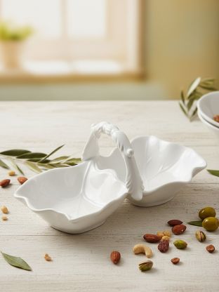 - Две вместительные секции (25х13х9.5 см), прочная керамика — легко мыть, подходит для ежедневного и праздничного использования.