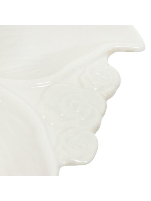 Менажница понадобится для хранения сразу нескольких блюд и для подачи на стол. Выполнена в виде круглого блюда из 5 секций. С помощью такой менажницы можно подать на стол сразу несколько блюд в пределах одной посуды, при этом не смешивая их между собой. Такая замысловатая вещь идеально подходит для сервировки определенных блюд, например: варенья, снеков или соусов, салатов, заправок и вторых блюд, рыбу со всякими соусами и прочие закуски.