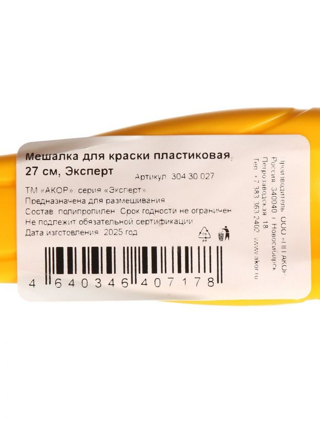 Мешалка для краски Акор Эксперт 27 см — идеальный выбор для ровного смешивания любых красок. Лёгкая, долговечная, не впитывает запахи. Для дома и дачи — по выгодной цене!