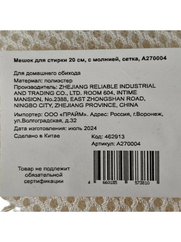 Мешок для стирки предназначен для бережной стирки, отжима, сушки белья в стиральной машине. Помогает предотвратить потерю мелких предметов, таких как пуговицы или молнии.