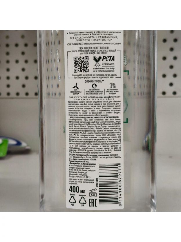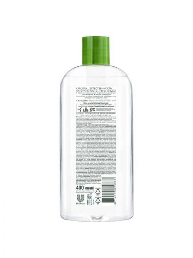 Мицеллярная вода Чистая линия, для всех типов кожи, 400 мл