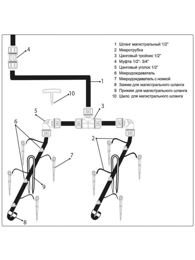 Микродождевой полив для кустарников и деревьев, на 20 растений, 9 м, Жук, 3963-00