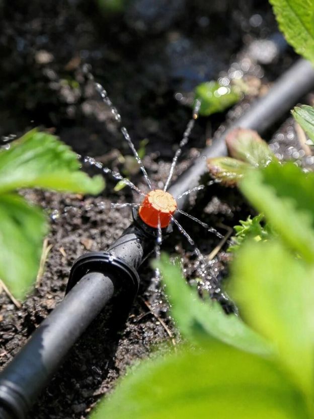 - Экономия воды благодаря точечному распределению и микродождевому принципу полива.