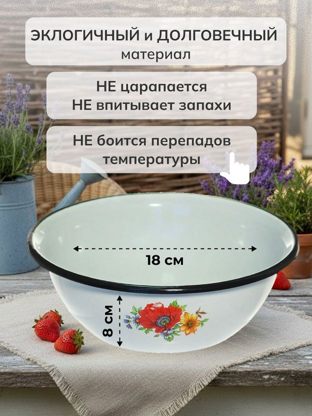 Миска эмалированная сталь 0.8 л: стиль прованс, долговечность и универсальность для кухни, дачи и сервировки. Безопасный выбор для ежедневного использования.
