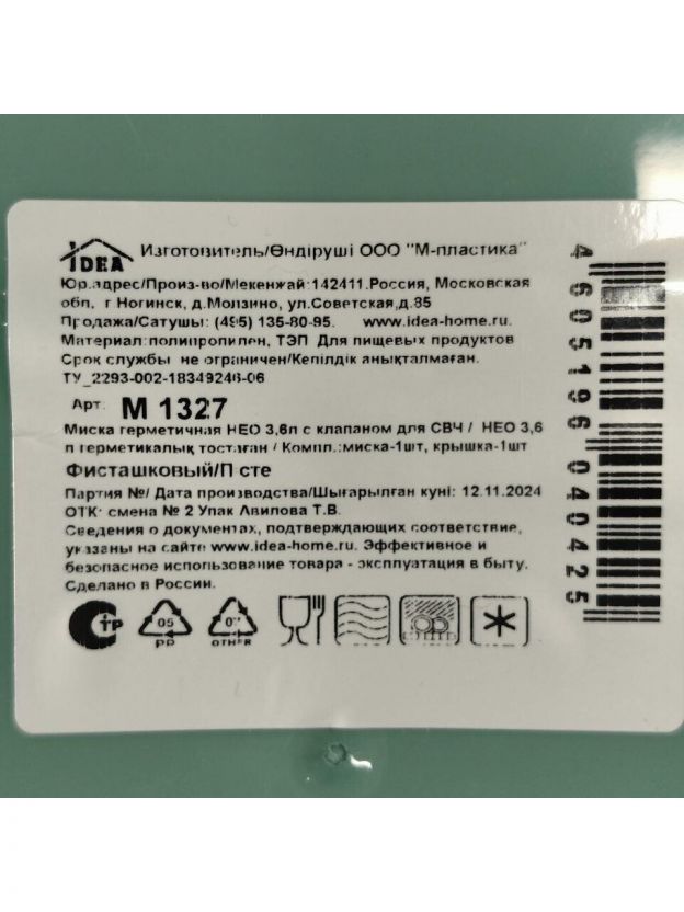 Миска пластиковая Idea Нео 3.6 л — это современный контейнер-миска для хранения, замораживания и разогрева продуктов. Благодаря прочному пищевому пластику и герметичной крышке с клапаном, вы забудете о протечках и неприятных запахах в холодильнике. Миска подходит для использования в микроволновой печи и посудомоечной машине, что экономит время и силы в быту.