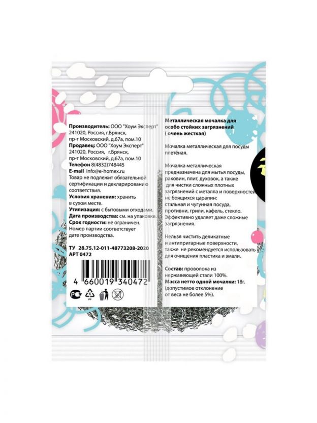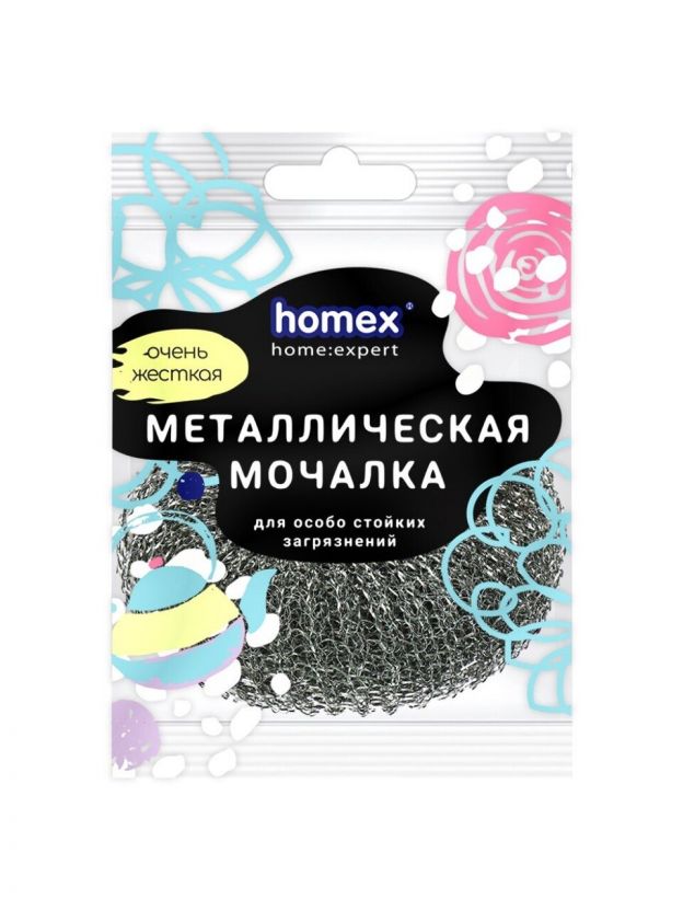 Мочалка для посуды металл, плетеная, Homex, Очень жесткая, 0472