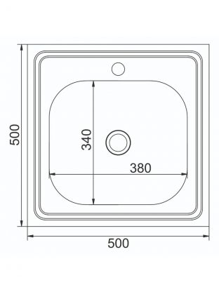 Размер мойки — 500х500 мм (50х50 см), глубина стандартная. Подходит для большинства кухонных шкафов шириной от 50 см.