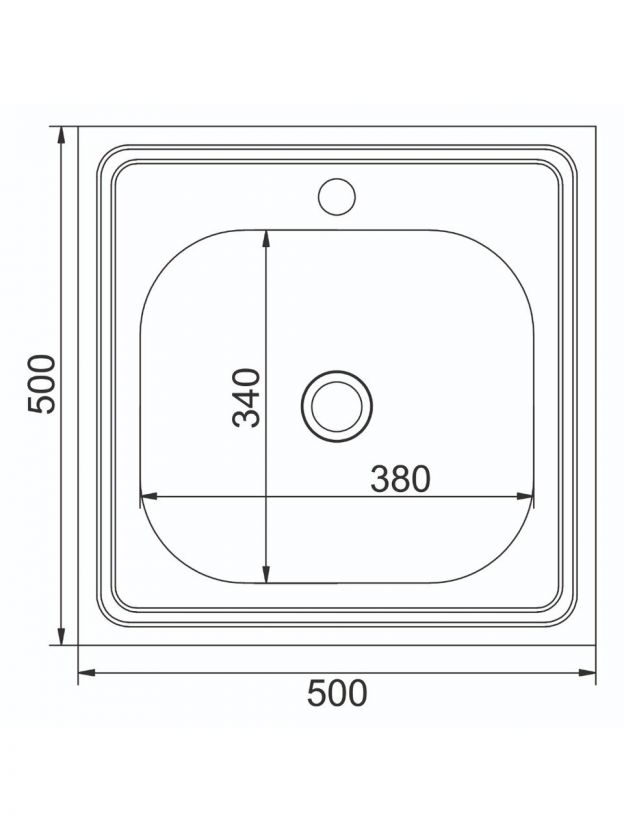 Мойка кухонная накладная, Mixline, нержавеющая сталь, 500х500 мм, 0.4 мм