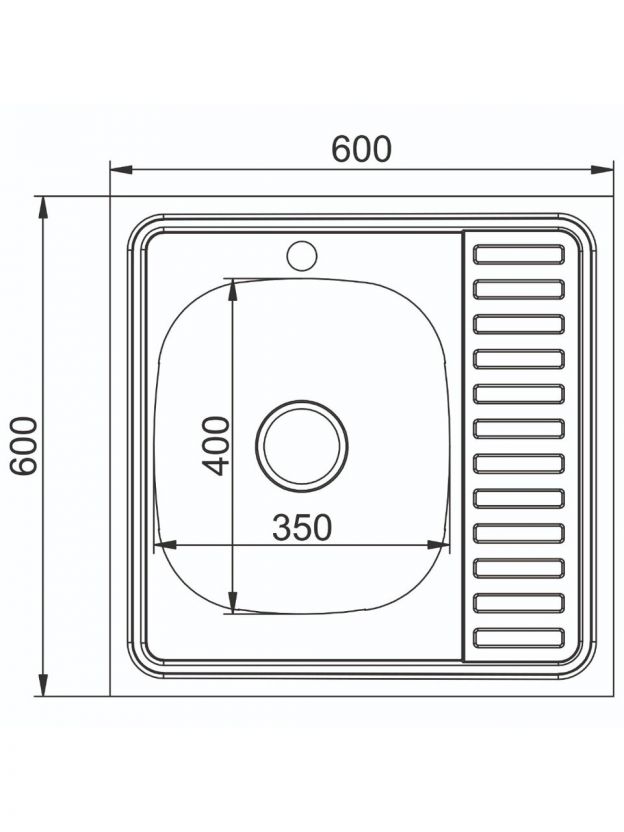 • Нержавеющая сталь 0.8 мм — устойчива к коррозии, царапинам и перепадам температуры, размер 60х60 см подходит для большинства стандартных кухонь.