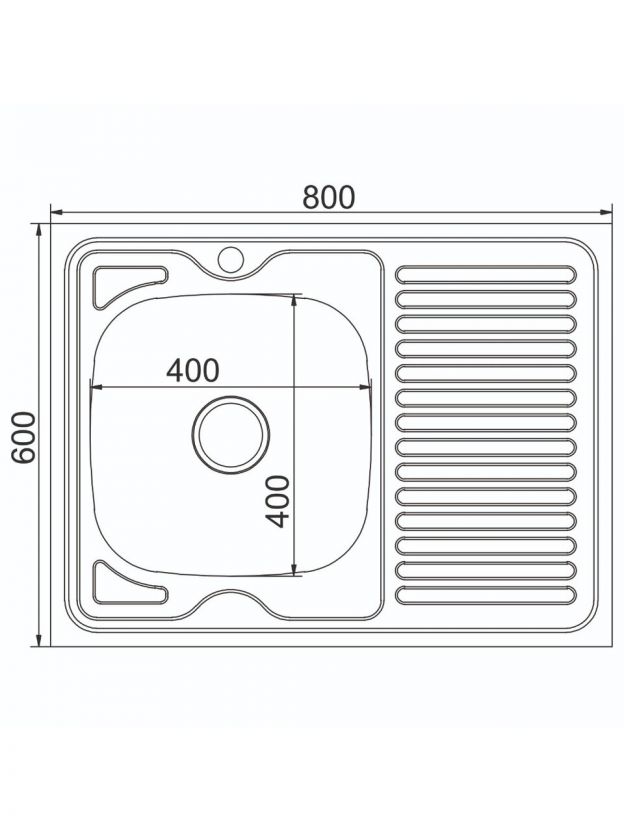 • Практичность: нержавеющая сталь 0.8 мм устойчива к коррозии, размер 80х60 см обеспечивает комфорт при мытье посуды;