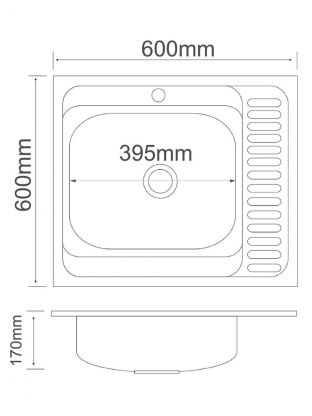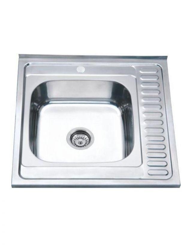 Мойка кухонная накладная, РМС, нержавеющая сталь, 600х600 мм, 0.6 мм, левый + сифон, MG6-6060L