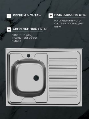 • Мойка безопасна для здоровья, не вредит экологии, не впитывает запахи и устойчива к появлению ржавчины.
