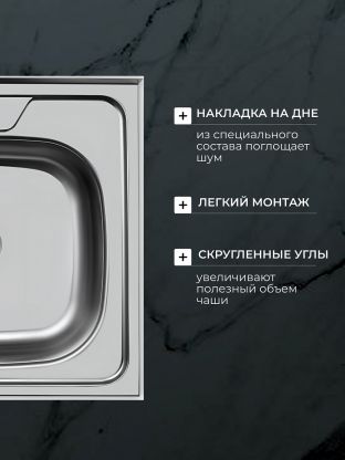 • Накладки на дне мойки из специального состава поглощают шум от льющейся воды.