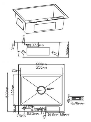 Кухонная мойка врезная с PVD покрытием Diadonna DS5060 — современное решение для стильной и функциональной кухни. Компактные размеры 50х60 см идеально подходят для небольших помещений, а глубина чаши 20 см делает эксплуатацию максимально удобной. Благодаря высококачественной нержавеющей стали с толщиной верха 3 мм и чаши 0.8 мм мойка отличается прочностью, долговечностью и устойчивостью к механическим повреждениям. PVD покрытие обеспечивает дополнительную защиту от коррозии. Прямоугольная форма и лаконичный дизайн позволяют легко сочетать мойку с различными стилями кухонного пространства. Одинарная чаша и наличие отверстия под смеситель делают монтаж быстрым и простым. Сифон в комплекте обеспечивает надежную защиту от неприятных запахов и засоров.