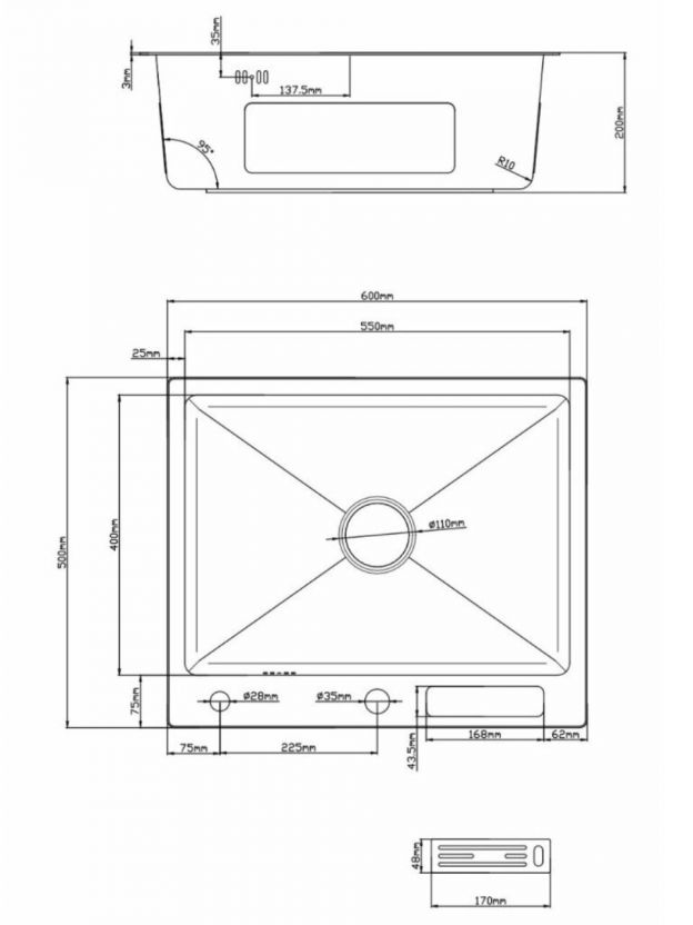 - толщина стали верха 3 мм и чаши 0.8 мм – прочность конструкции;
