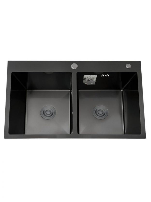 Мойка кухонная врезная, Diadonna, нержавеющая сталь, 780х500х200 мм, двойная, серый графит, DS7850BT