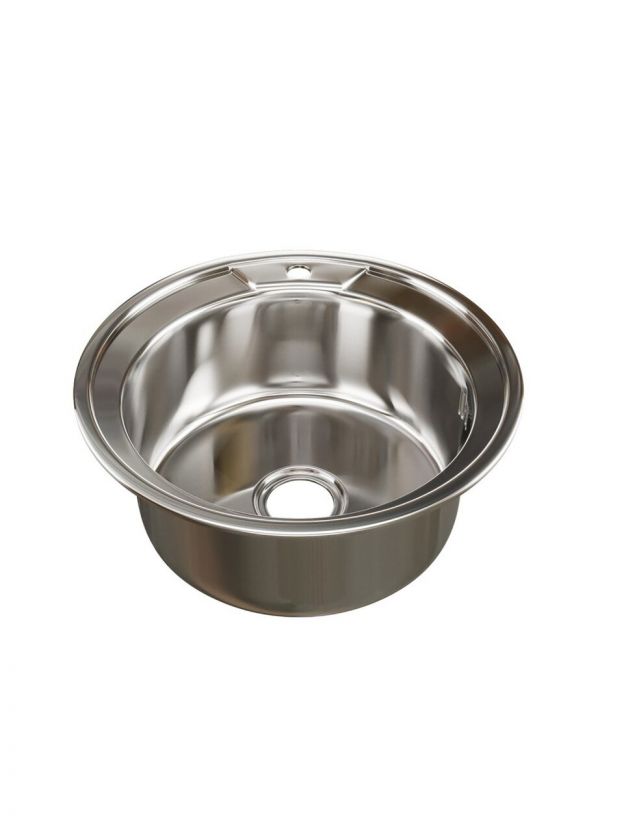 Для врезной установки требуется отверстие диаметром около 47-48 см — это обеспечивает плотное прилегание и устойчивость мойки. Толщина стали — 0.6 мм, что облегчает монтаж.