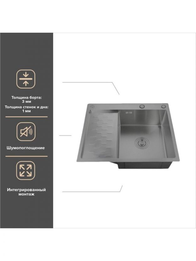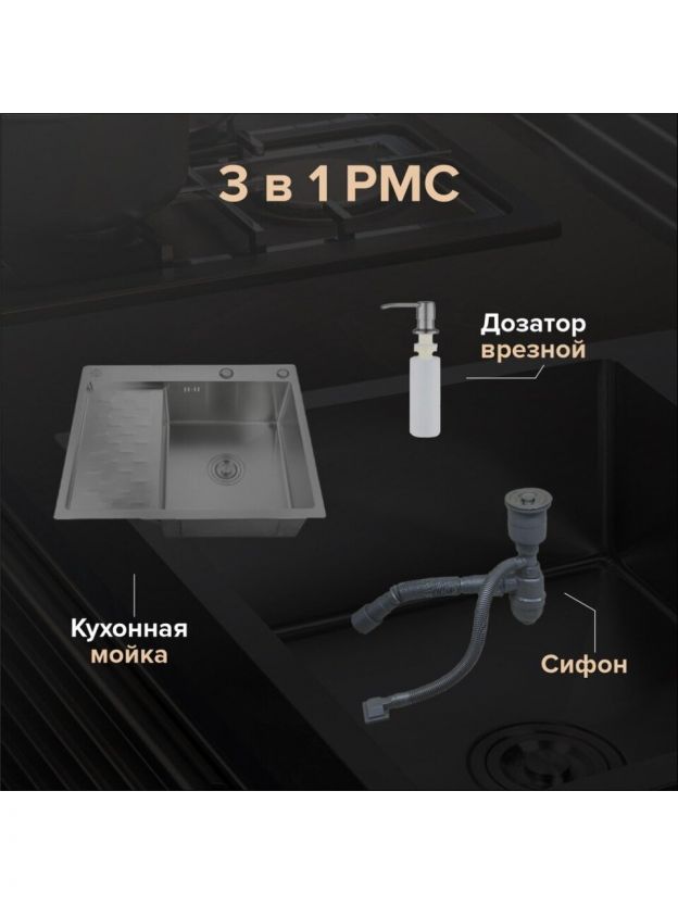 Стильная и элегантная мойка из нержавеющей стали с врезным дозатором добавит шик и современность вашей кухне. Ее прочность и удобство использования позволят Вам наслаждаться процессом уборки, не беспокоясь о повреждениях или коррозии. Благодаря удобным размерам и эргономичному дизайну Вы сможете легко и комфортно проводить время на кухне.