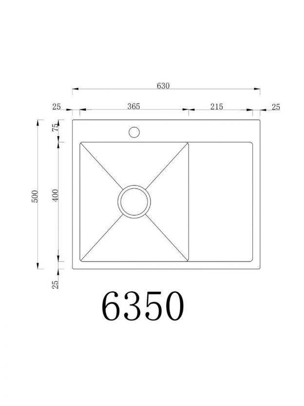 Мойка кухонная врезная, РМС, MRK-6350BL-R, нержавеющая сталь, 630х500 мм