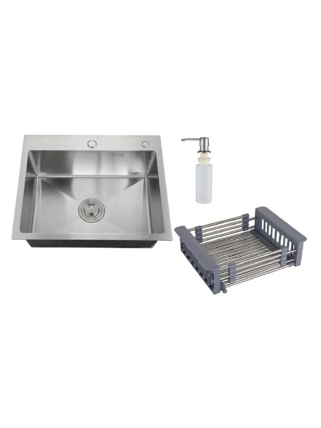 В комплекте: сифон, корзина-коландер и дозатор для моющего средства. Это экономит время и деньги — не нужно докупать аксессуары отдельно, а уход за мойкой становится проще.