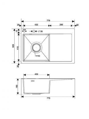 Мойка кухонная врезная, РМС, нержавеющая сталь, MRK-7851L