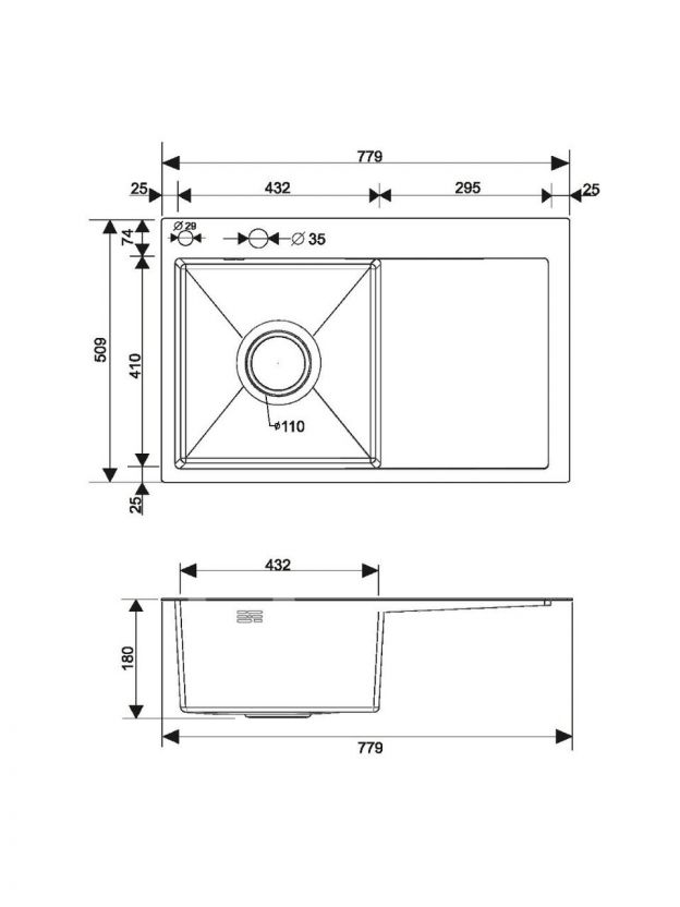 - Диаметр слива: 11 см.