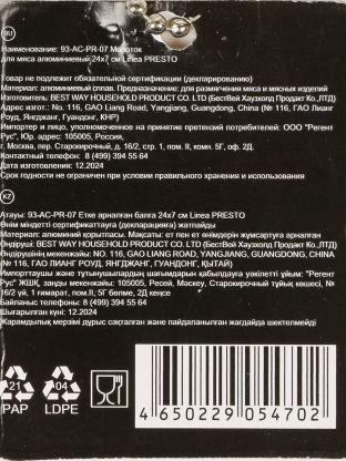 Молоток для мяса Regent Inox Linea Presto — это удобный кухонный инструмент для отбивания мяса, птицы или даже рыбы. Благодаря размеру 24х7 см и легкому алюминиевому корпусу, он эффективно размягчает волокна, сохраняя структуру продукта. Часто спрашивают: «Какой молоток выбрать для отбивных?» — алюминиевый вариант выигрывает по весу и долговечности, не деформирует мясо и не впитывает запахи.