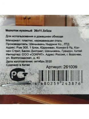 Молоток для мяса, пластик, 884-249/261009