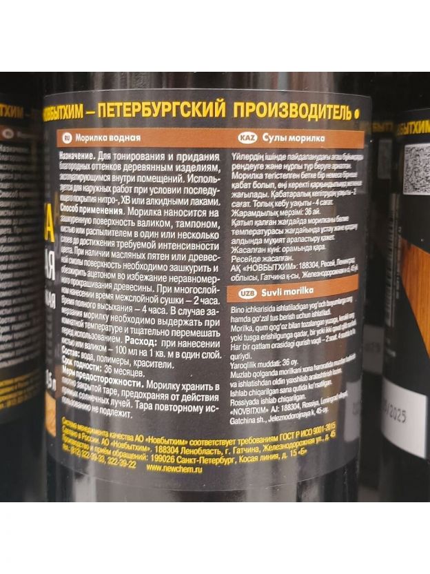 Морилка водная предназначена для тонирования и придания благородных оттенков деревянным изделиям, эксплуатирующимся внутри помещений. Может использоваться для наружных работ при условии последующего покрытия лаком ХВ-784, атмосферостойким лаком АК-199 производства компании «Новбытхим», акрилатным лаком для дерева и яхтным лаком для дерева «Главный Технолог», нитро-лаками.