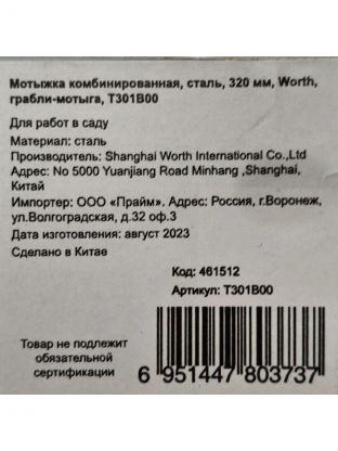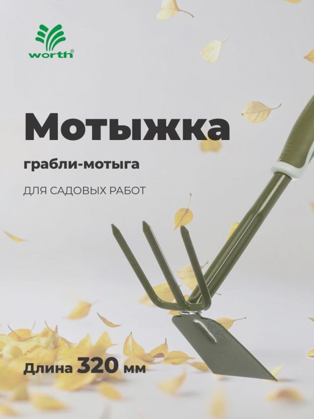 Мотыжка грабли-мотыга, сталь, 320 мм, комбинированная, Worth, T301B00