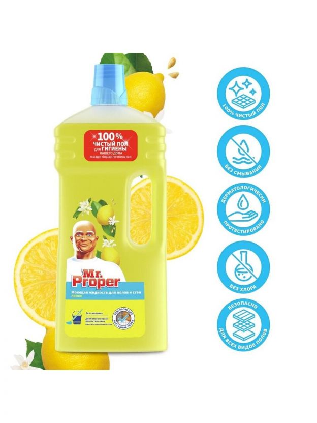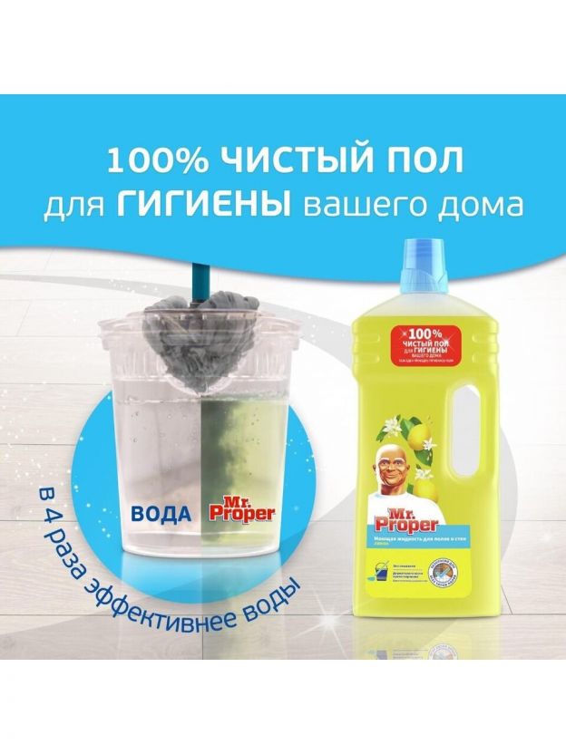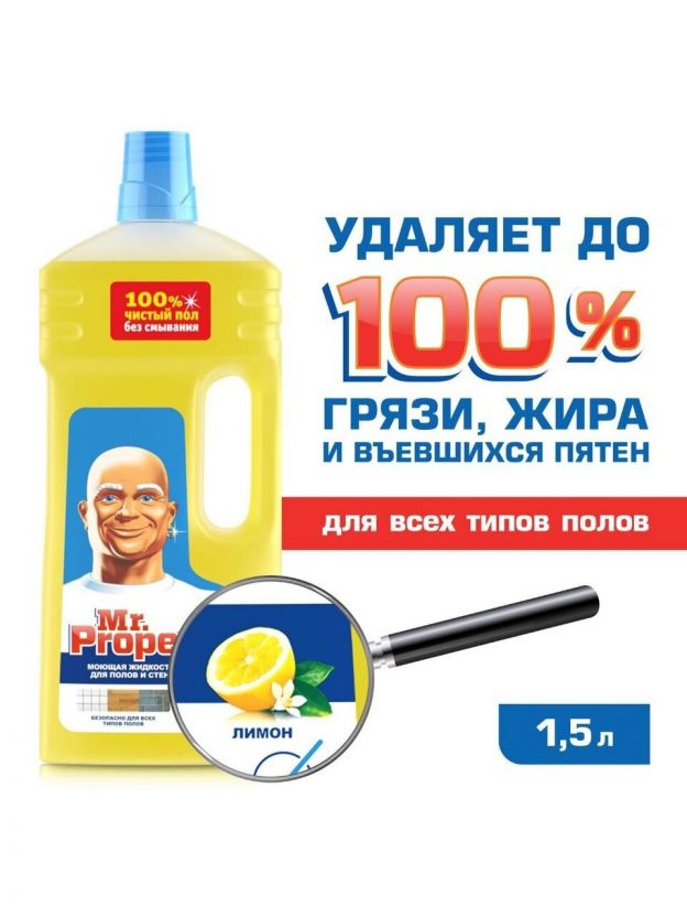 Универсальное моющее средство Mr. Proper идеально подходит для очищения практически любых твердых поверхностей в доме. Его можно использовать для мытья кухонных раковин, удаления жира с плиты и даже для пола. Подробные инструкции по применению указаны на упаковке. После очищения поверхностей, соприкасающихся с пищевыми продуктами, необходимо промыть их водой.