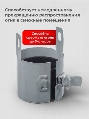 Муфта противопожарная – самосрабатывающая муфта способствующая немедленному прекращению распространения огня в смежные помещения, проходящего по огнеопасным пластиковым трубам. Муфта способна сдерживать огонь до трех часов.