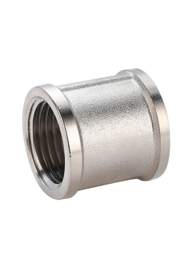 Муфта соединительная 3/4", DN 20, никелированная латунь — надежное решение для герметичного соединения труб в водопроводе и отоплении без протечек и коррозии.