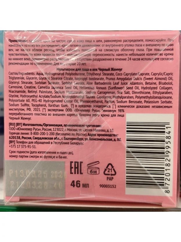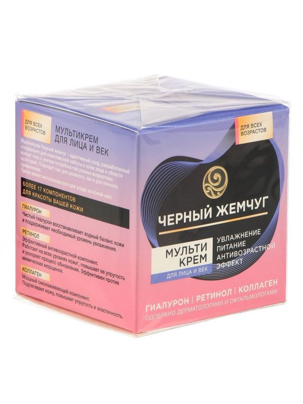 Мультикрем для лица и век, Черный жемчуг, Увлажнение и питание, антивозрастной, для всех типов кожи, 46 мл
