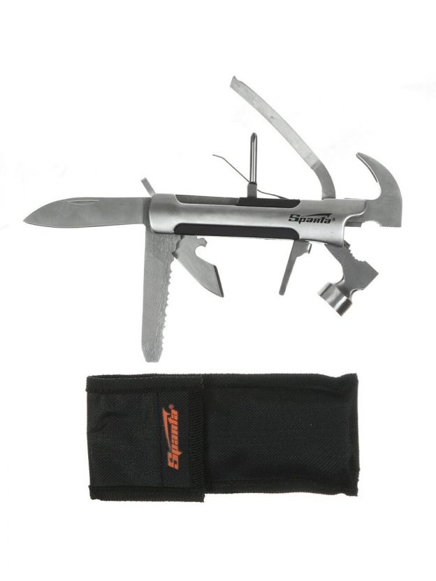 Мультитул — универсальный инструмент, включающий в себя самые необходимые в быту предметы: молоток с круглым бойком, пассатижи, гвоздодер, отвертки крестовая и шлицевая, консервный нож, нож с пилкой, больной нож.