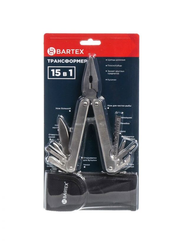 Мультитул-трансформер 15 функций, с чехлом, 156 мм, Bartex, 1227010