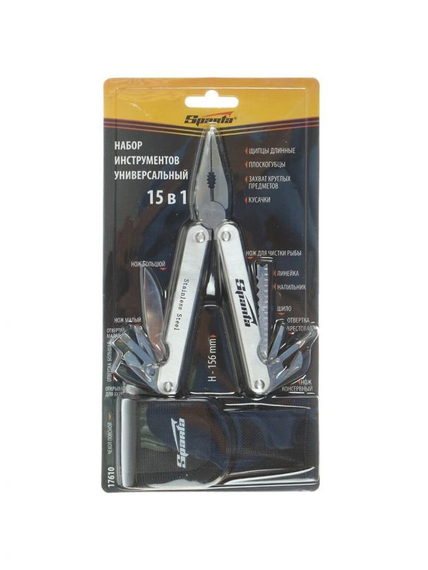 Мультитул-трансформер 15 функций, с чехлом, 156 мм, Sparta, 17610