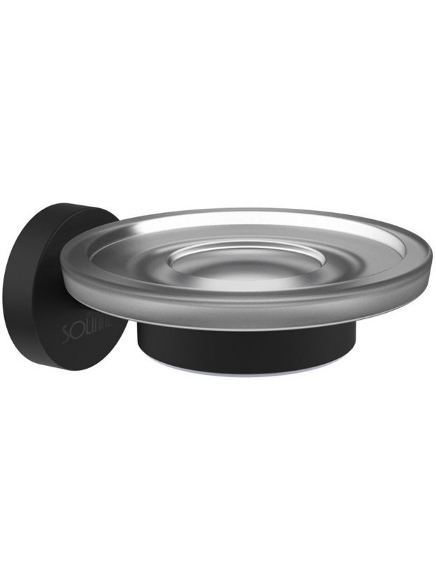 Стеклянная мыльница Solinne входит в коллекцию Вальс. Изготовлена из качественной стали с черным матовым покрытием. Чаша выполнена из прочного стекла. В комплект поставки входит настенное крепление - дюбели.