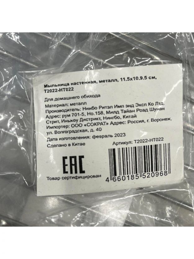 Мыльница настенная, металл, 13.5х8х4.5 см, силиконовое крепление, T2022-HT022